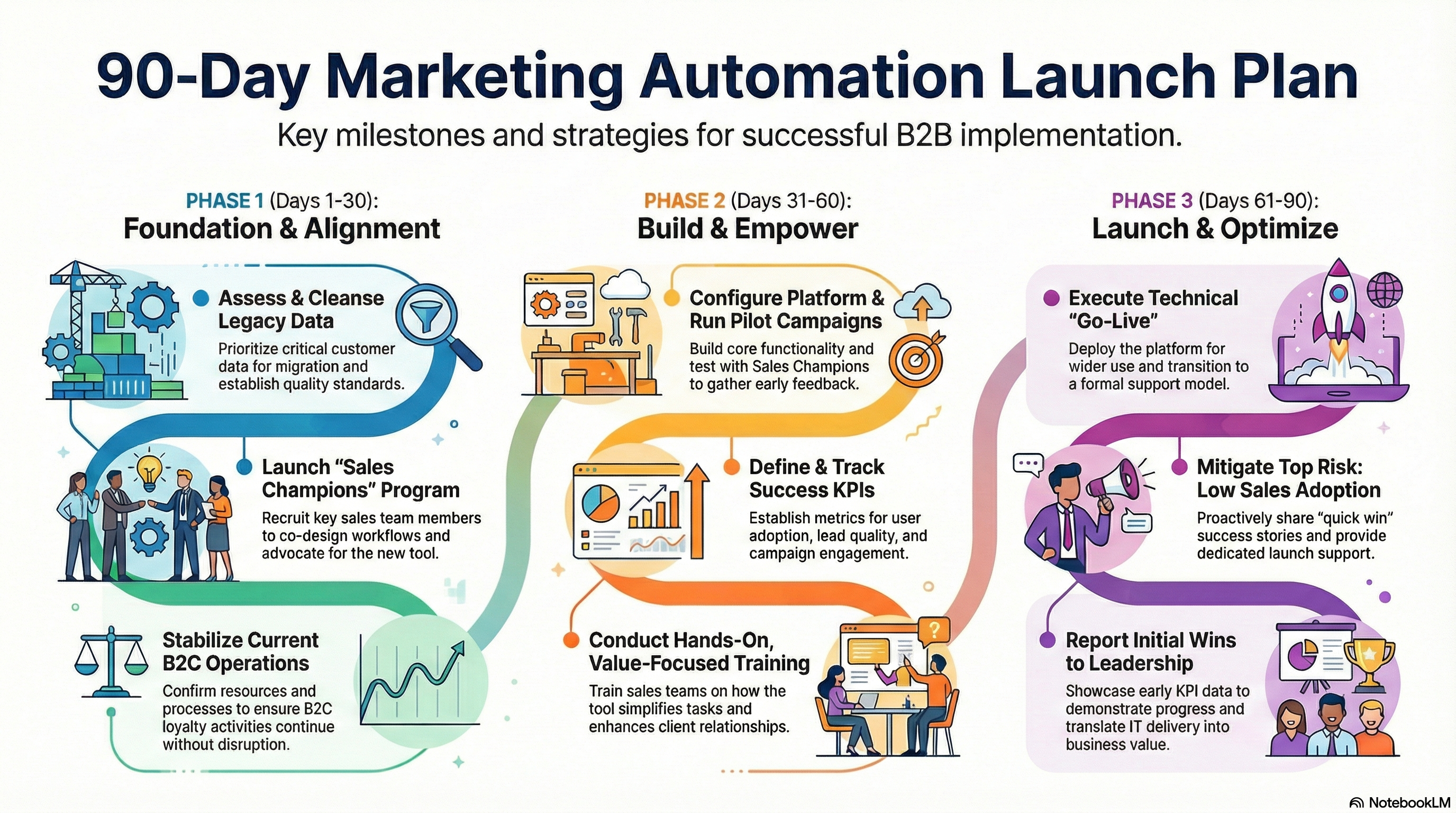 Check out this 90-day Marketing Automation Launch Plan Infographic — the operating model behind this approach:
